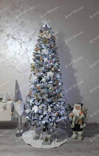 Zăpada este aplicată pe crenguțe cu ajutorul unei tehnologii de ultimă generație, astfel încât zăpada aproape că nu cade de pe pom. În timpul primei desfaceri a crenguțelor, se eliberează părțile de zăpadă necapturate.