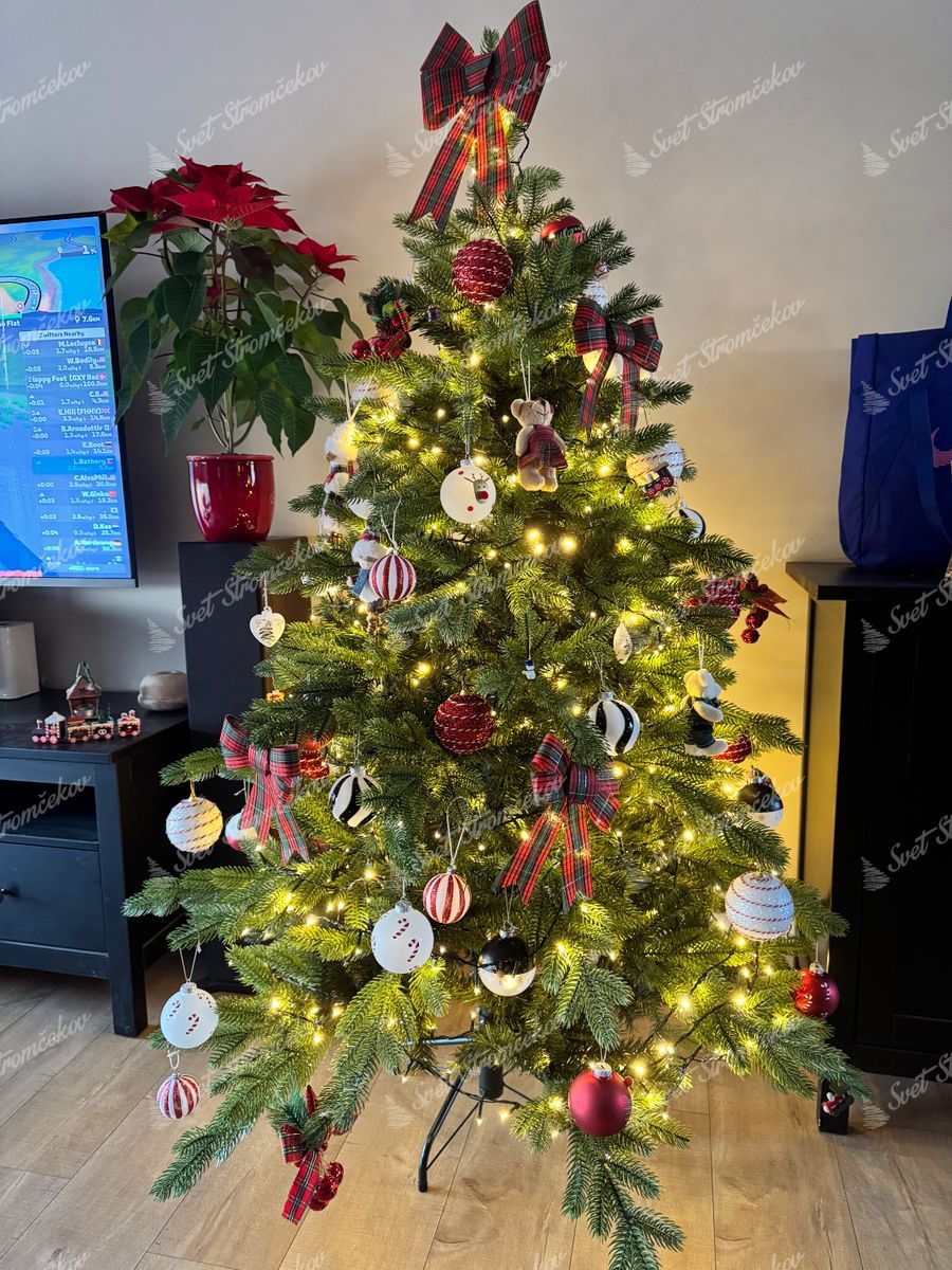 Bradul este format din două piese, iar vârful este o piesă separată. Este nevoie de un minut pentru a împături ramurile principale, apoi pentru a aranja ramurile laterale (aproximativ o jumătate de oră, dacă ești atent), după care copacul arată foarte natural și luxuriant. Ramurile interioare au un finisaj mai simplu (panglică tăiată), dar acest lucru se poate vedea doar de aproape. Am primit ceea ce ne așteptam pentru banii pe care i-am primit, aș recomanda. Livrarea a fost nedetectabilă (nu se putea ști ce firmă de curierat o va livra), dar în cele din urmă a ajuns în termenul indicat (2-7 zile lucrătoare), 6 zile lucrătoare, MPL a livrat-o.