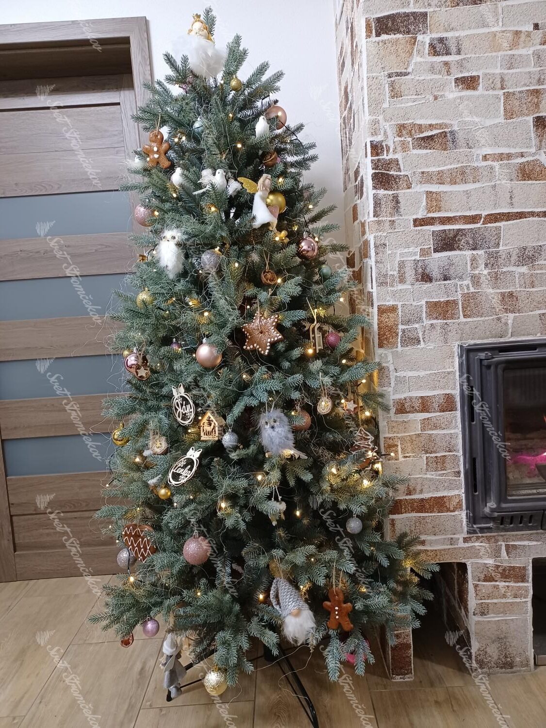 • pomul este completat la trunchi cu crenguțe clasice din PVC verzi pentru a obține un aspect dens