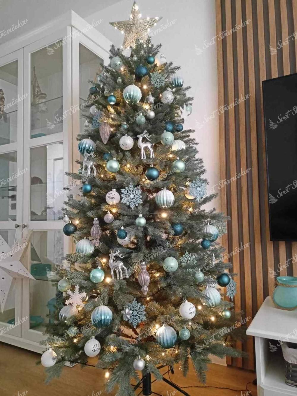 Molidul Înghețat Slim 3D, acesta este o alegere potrivită pentru toți cei care au la dispoziție un spațiu limitat pentru bradul de Crăciun. Pomul este caracterizat în principal de culoarea sa argintie-turcoaz unică și forma lui îngustă, datorită căreia iese în evidență chiar și în spații limitate.