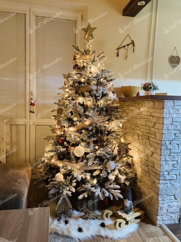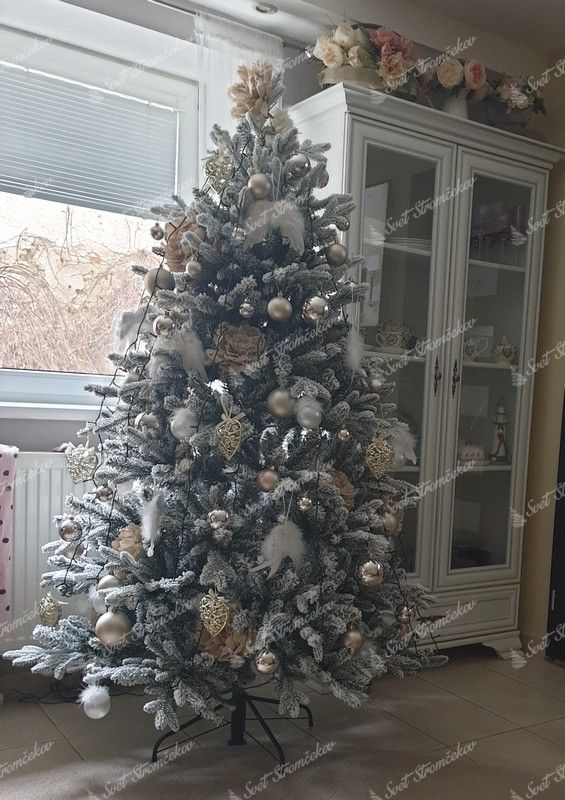 Folosind cea mai modernă tehnologie, straturile de zăpadă artificială sunt aplicate treptat pe întregul brad și nu cad din pom. Pomul are o construcție solidă din fier și un suport metalic stabil inclus în pachet.