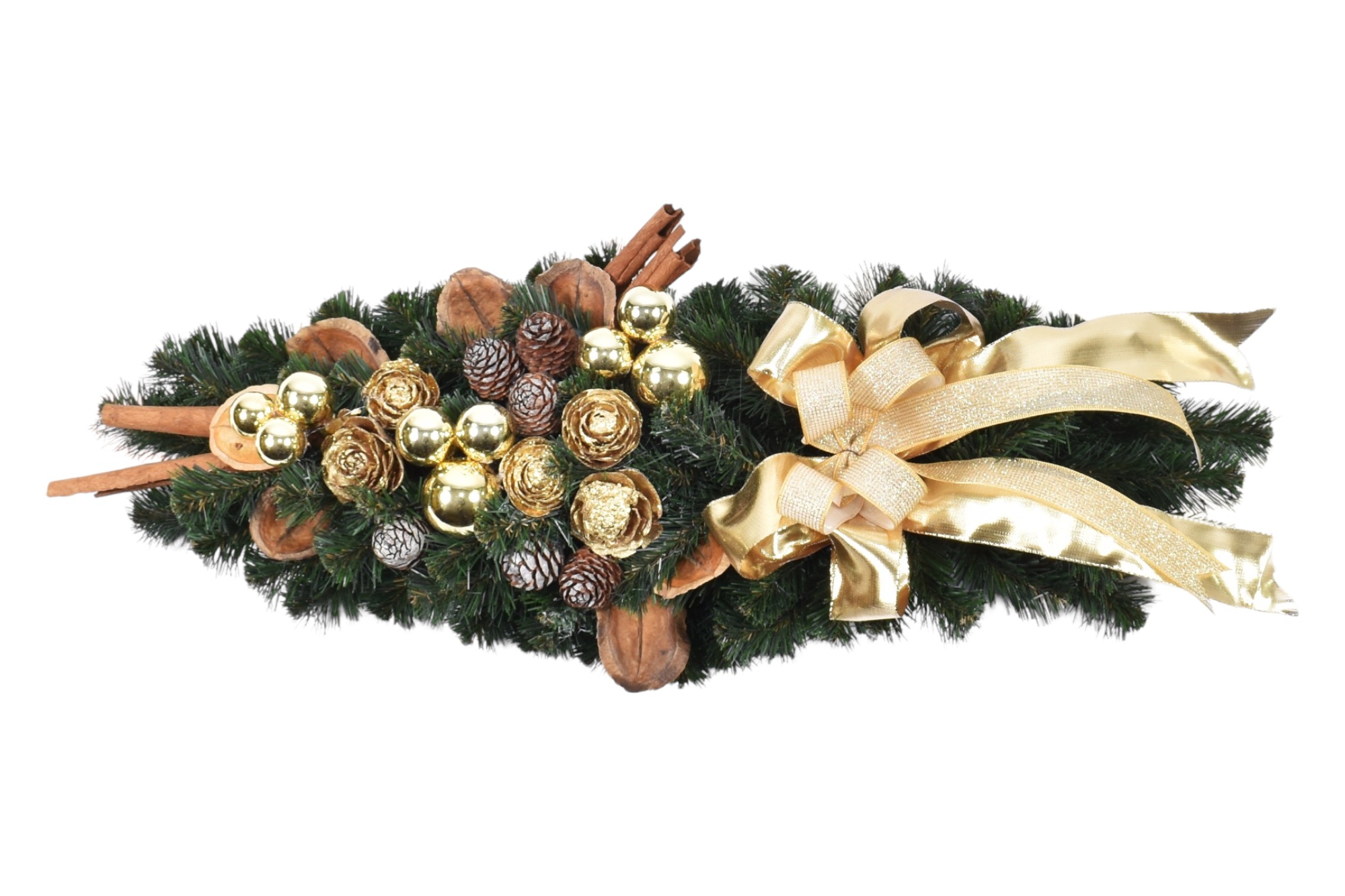 Este mai lată în mijloc și se îngustează treptat la capete. Constituie un decor de Crăciun de foarte bun gust în culoarea aurie.