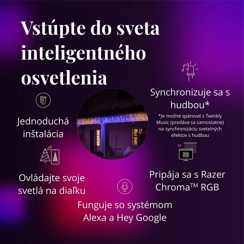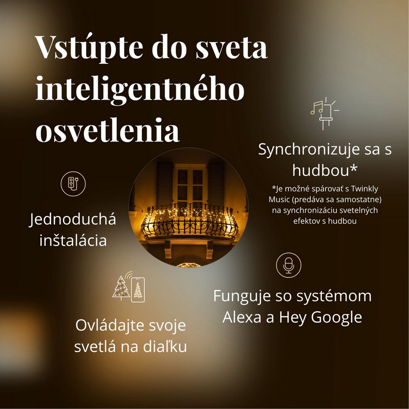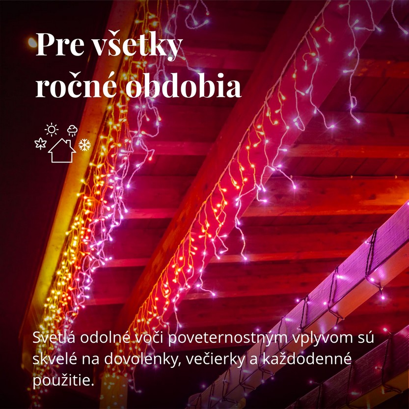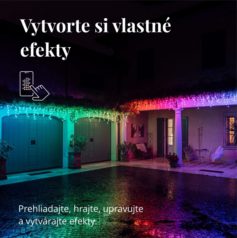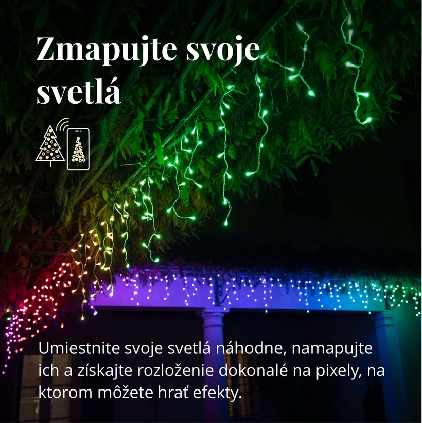 Turțurii luminoși pot fi sincronizați cu alte produse TWINKLY, ceea ce garantează un spectacol de lumini perfect din punct de vedere estetic.