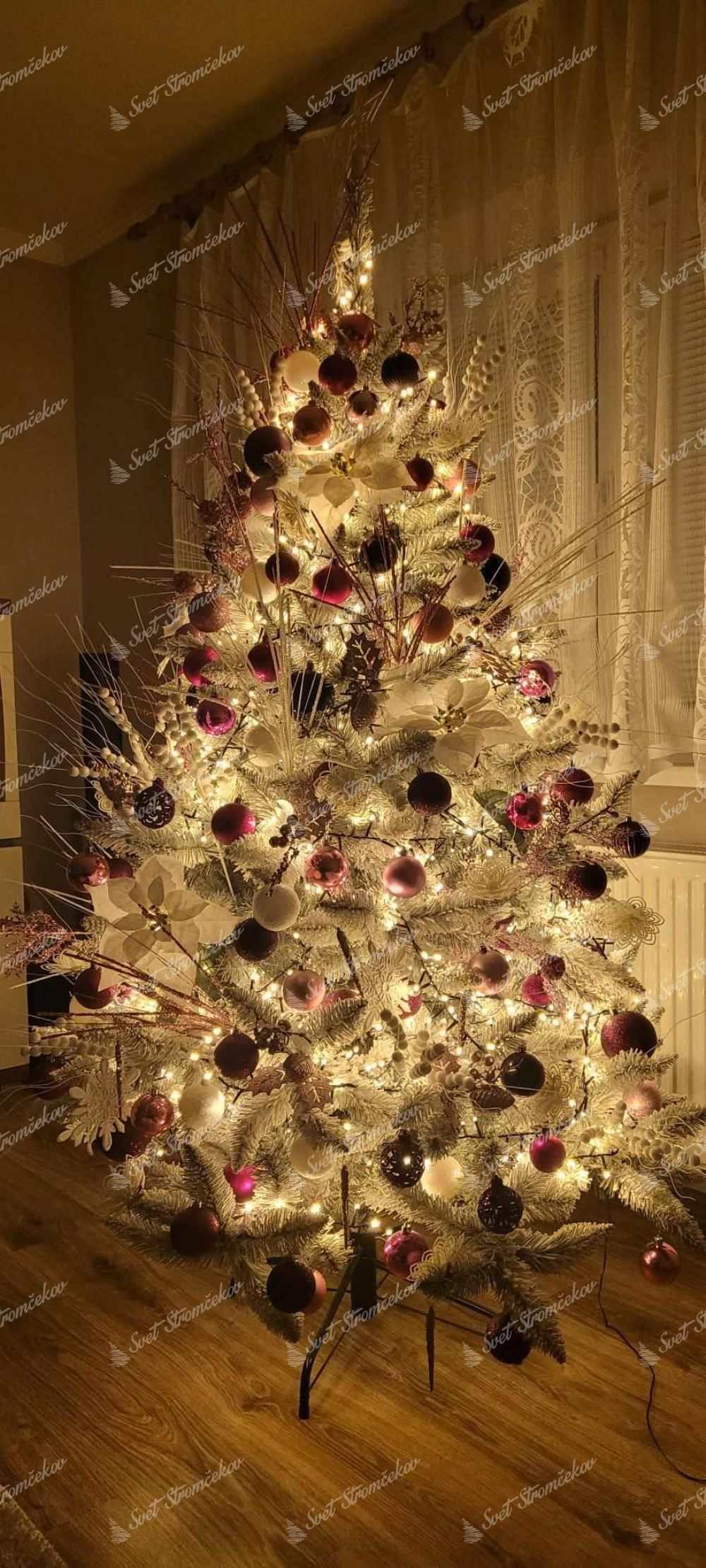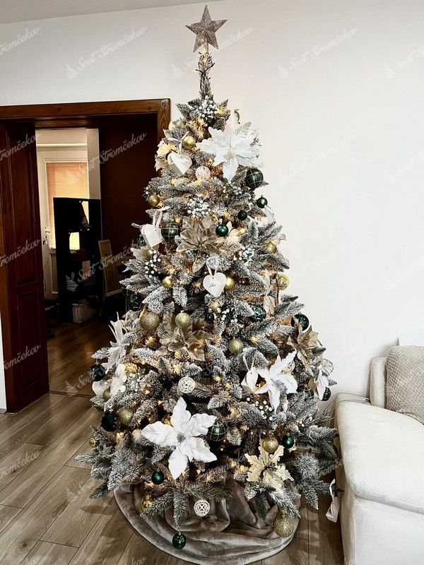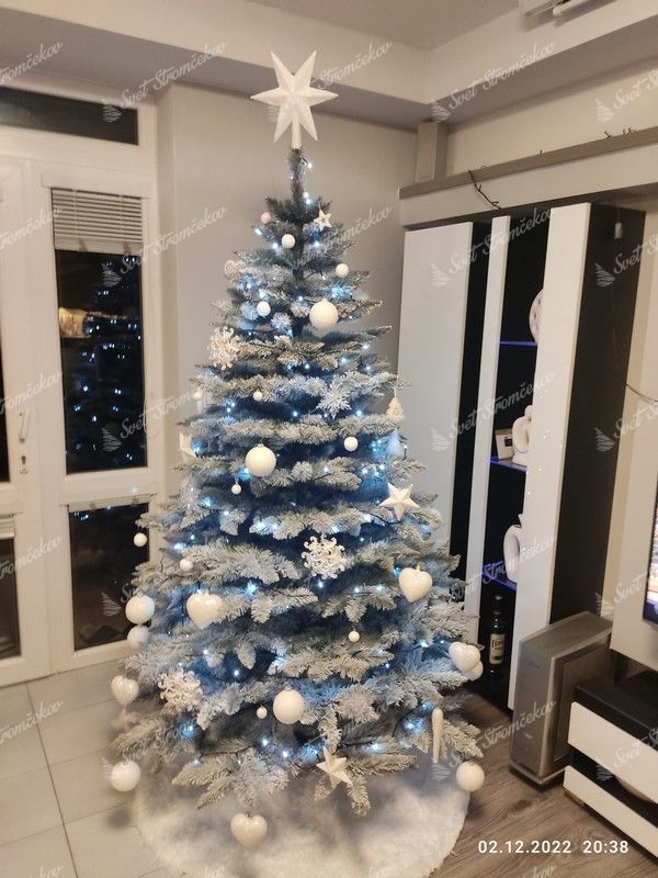 Bradul de Crăciun modern, acoperit cu zăpadă, Molid Alb, zăpada este aplicată pe crenguțe cu ajutorul celei mai noi tehnologii, astfel încât zăpada abia dacă cade de pe brad. În timpul primei desfaceri a crenguțelor, se eliberează părțile de zăpadă necapturate.