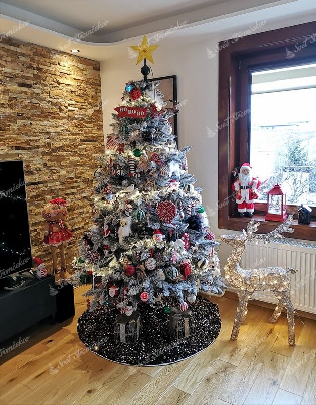 Bradul de Crăciun modern, acoperit cu zăpadă, Molid Alb, zăpada este aplicată pe crenguțe cu ajutorul celei mai noi tehnologii, astfel încât zăpada abia dacă cade de pe brad.  În timpul primei desfaceri a crenguțelor, se eliberează părțile de zăpadă necapturate.