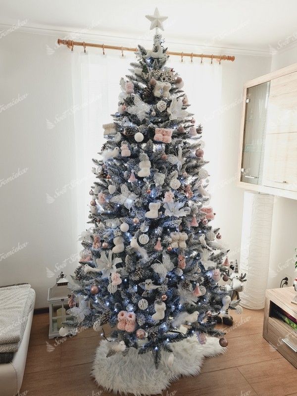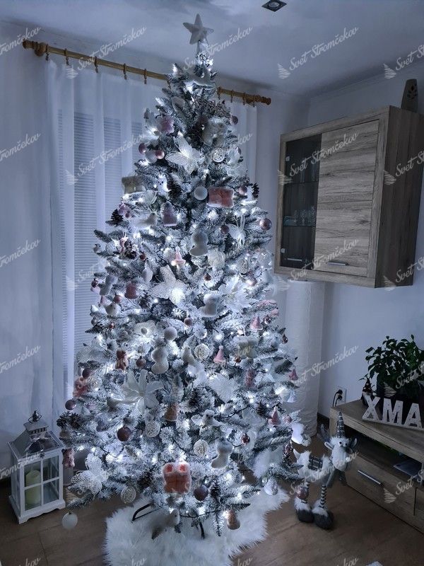 Bradul de Crăciun modern, acoperit cu zăpadă, Molid Alb, zăpada este aplicată pe crenguțe cu ajutorul celei mai noi tehnologii, astfel încât zăpada abia dacă cade de pe brad. În timpul primei desfaceri a crenguțelor, se eliberează părțile de zăpadă necapturate.