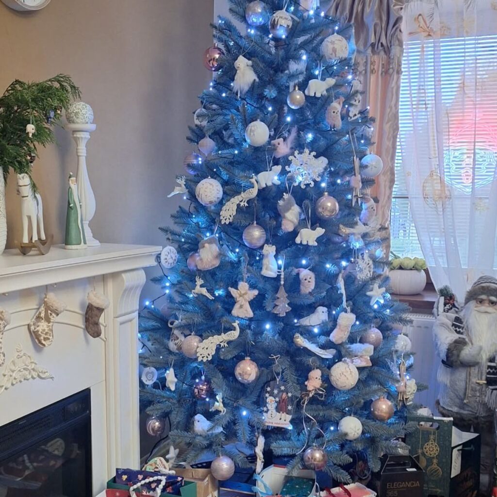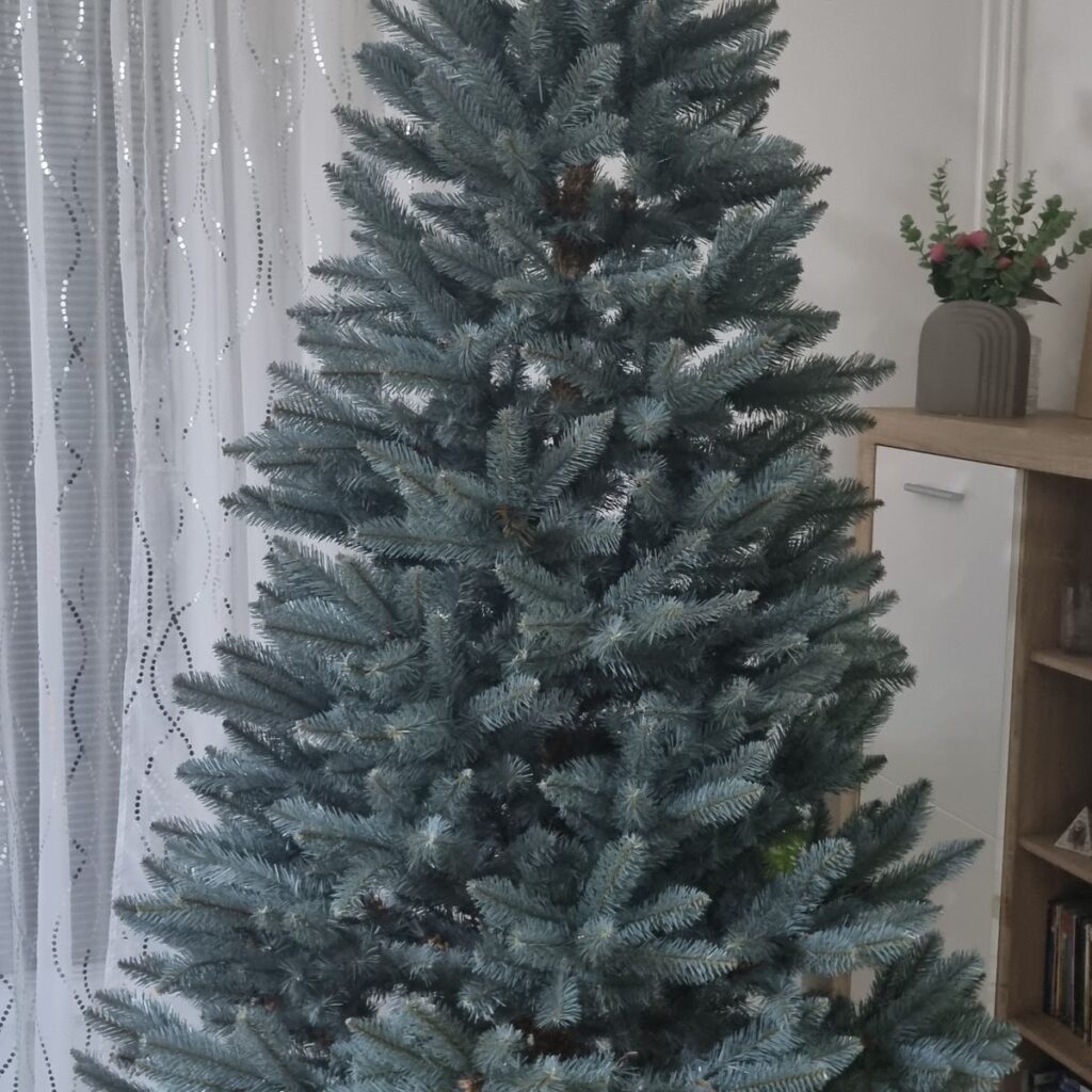 Pomul de Crăciun artificial Molid Argintiu se caracterizează prin ace înguste fabricate din PVC de culoarea turcoaz-argintiu și un număr mare de crenguțe. Are o construcție din fier de calitate și un suport stabil inclus în pachet.